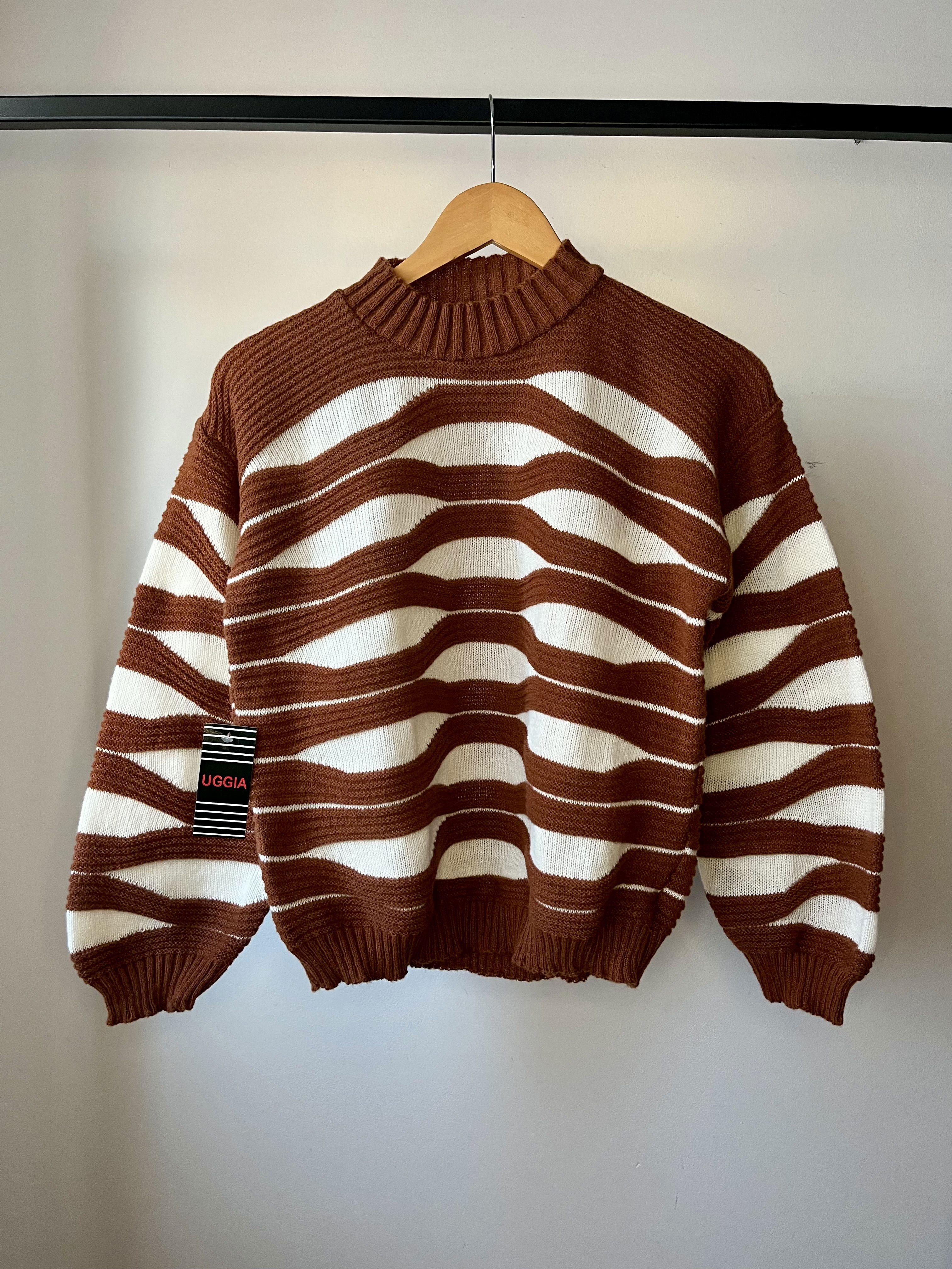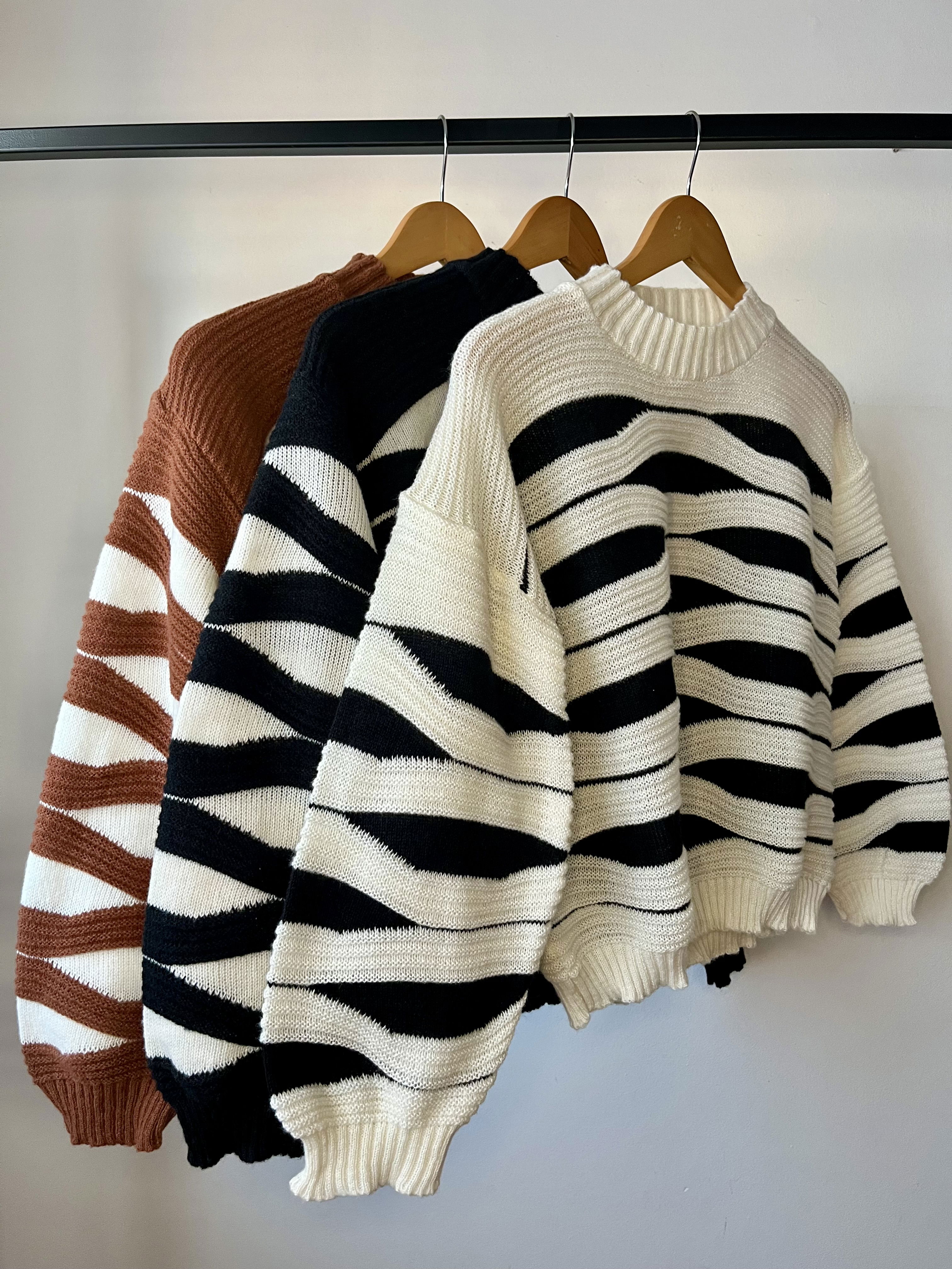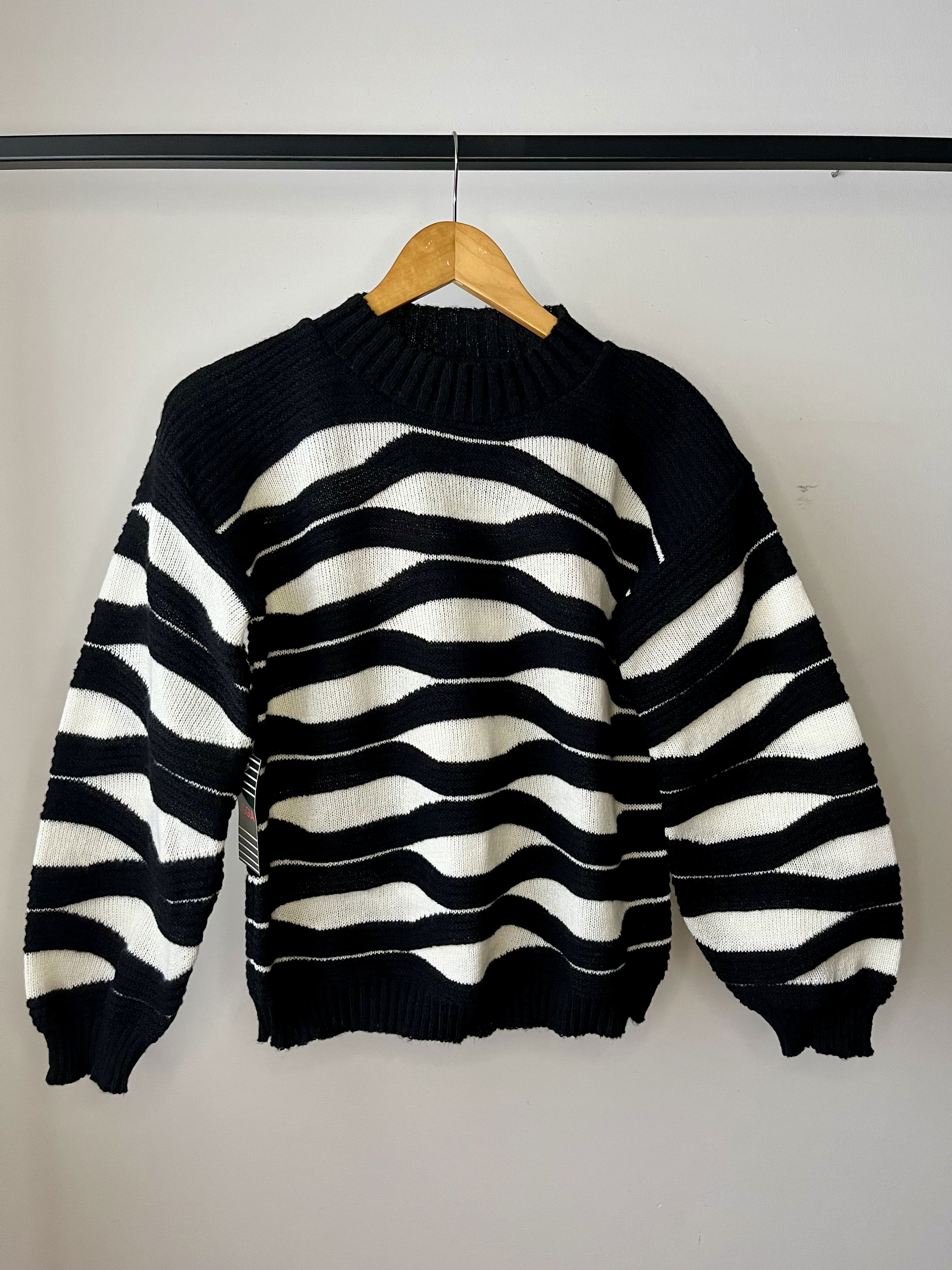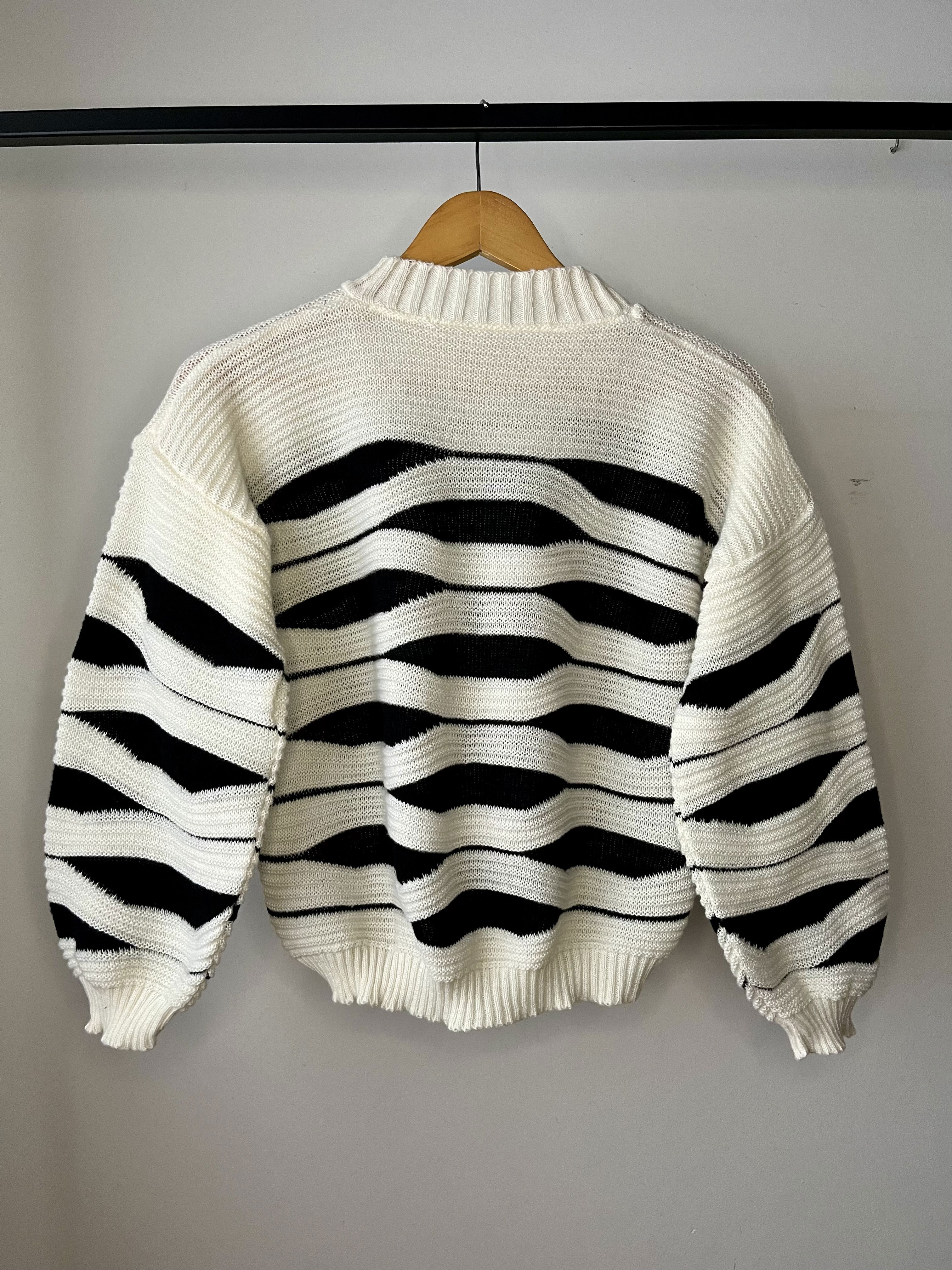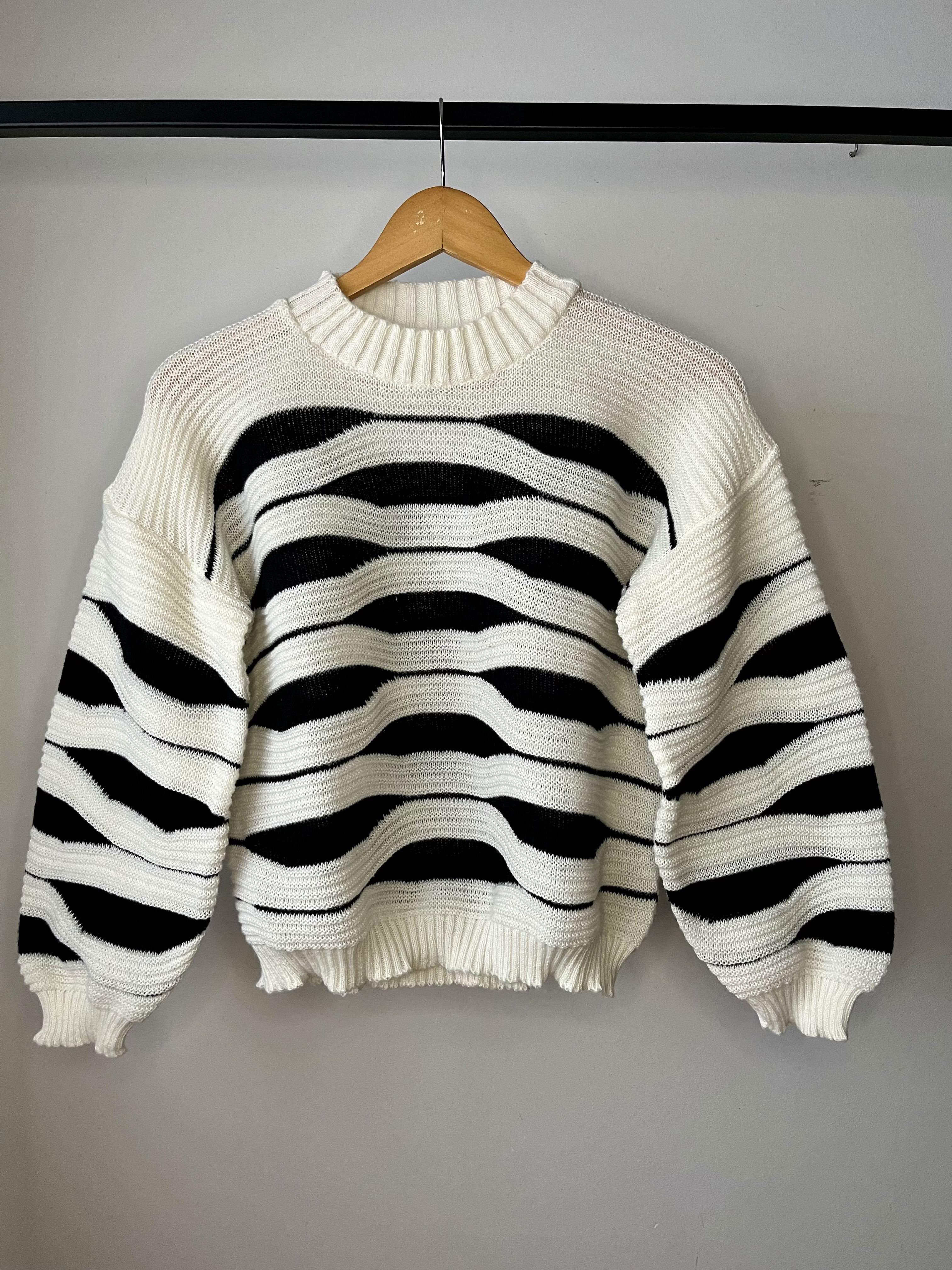 Sweater con mangas globo y diseño de ondas en el tejido. Prenda con textura y volumen para un look moderno.