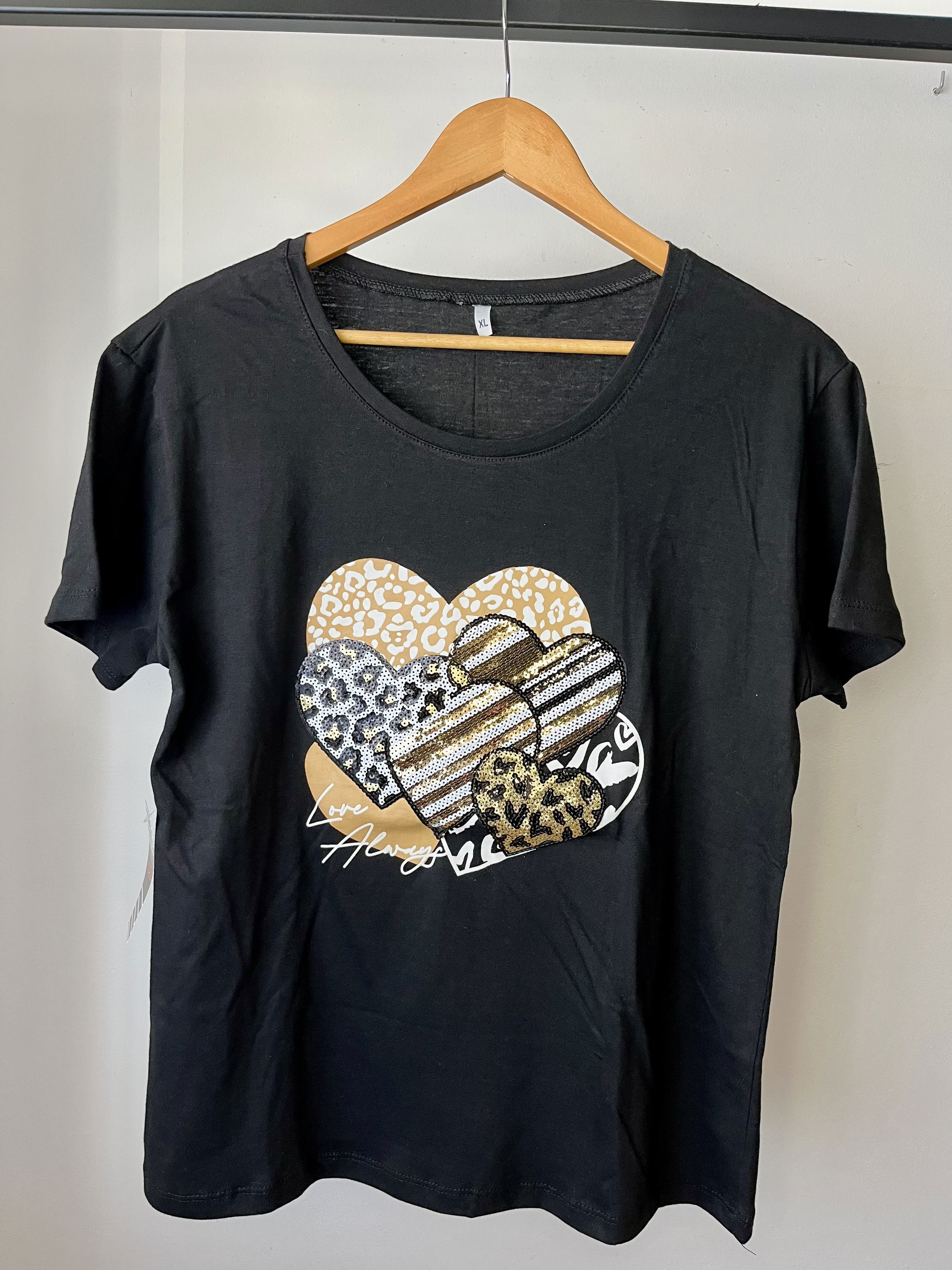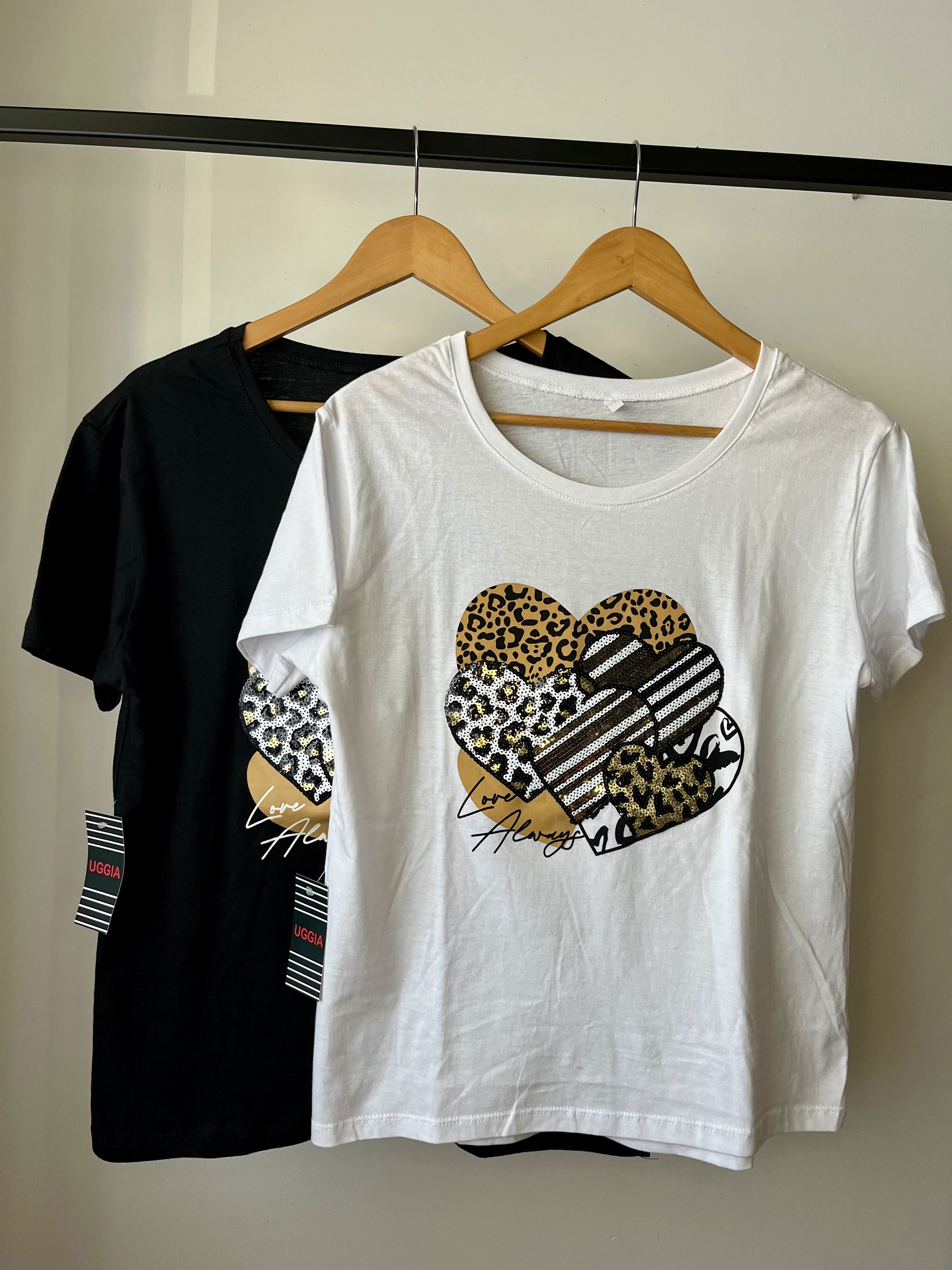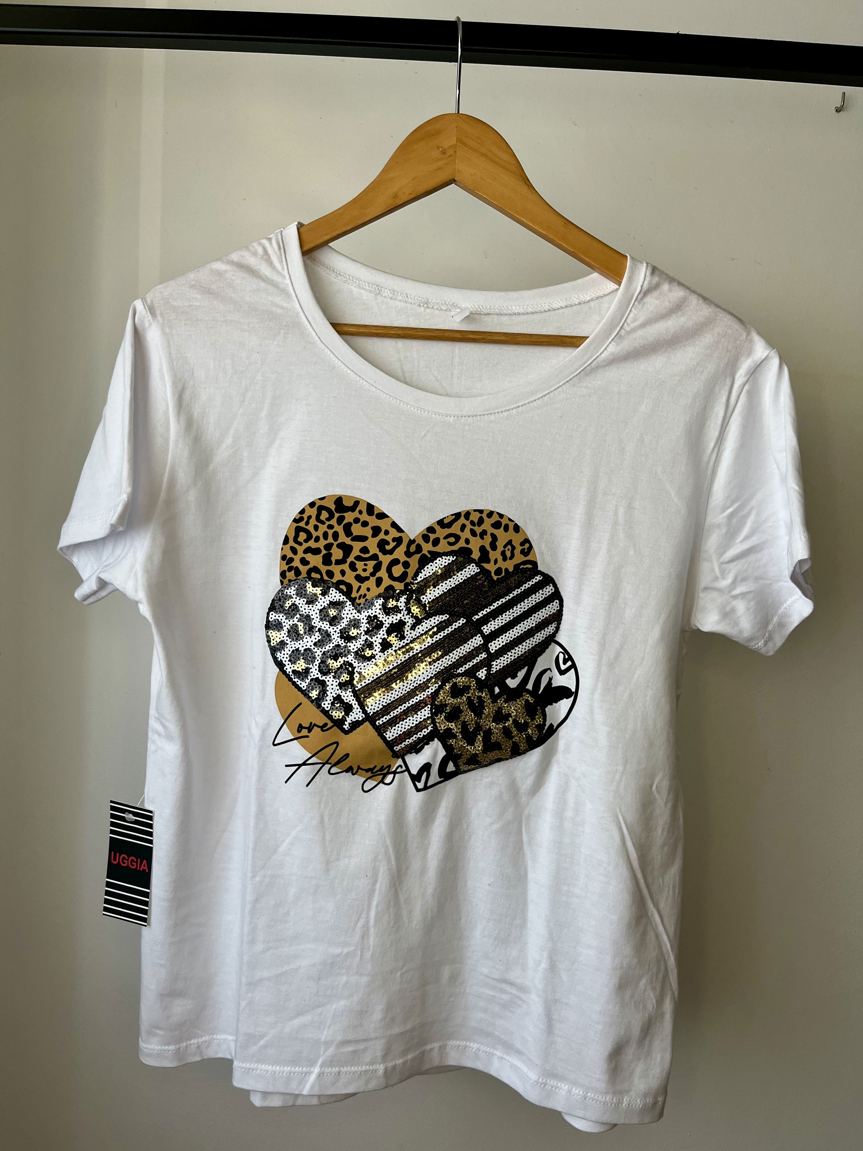 Remera de algodón con estampa y detalles de lentejuelas que aportan brillo.
